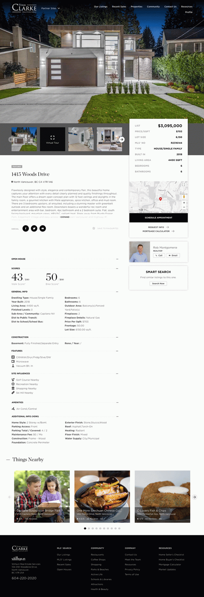 The new site features a custom-built map search that integrates with MLS and incorporates convenient features like “search by dragging the map” and toggles between viewing styles. We also connected the site to Yelp so users could search nearby restaurants, cafes, parks, and other attractions.